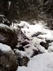 Та самият преход не е кой знае какво, дори и през зимата. По принцип колите се оставят на Зелени Преслап, но пътя от отбивката нагоре беше заледен и оставихме колите на пътя за лифта. Последва едно приятно изкачване в снега, като се отбихме за снимки на водните каскади на реката встрани от пътеката.