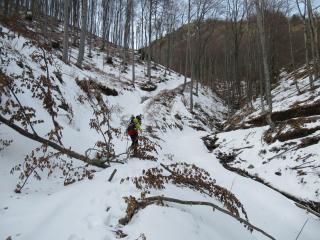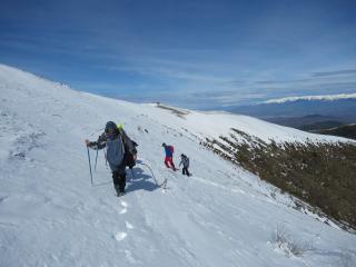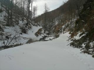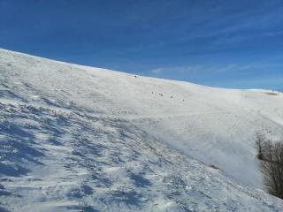 В един момент се отбихме от нея по един от новонаправените пътища в района, който свърши в един момент и ни се наложи да откатерим директно по стръмният склон измежду дърветата и като свърши гората по голото било. Добре че снегът не беше дълбок, а вече на откритото беше съвсем издухан, като беше останала само по-твърдата основа.