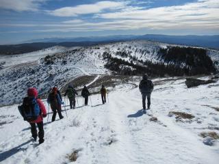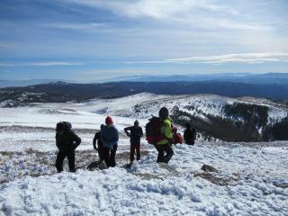 На билото започна да духа силен и смразяващ северен вятър, така че на върха не се задържахме дълго, колкото за по някоя снимка и поехме надолу, но не по същия път, а към заставата, така че да направим кръгов маршрут. Пак объркахме пътя и през една нива и едно дере директно излезнахме на заставата, пътят заобикаляше дерето, но го бяхме пропуснали.