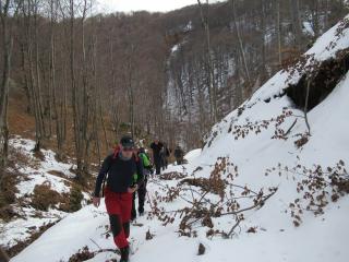Вече достигнали самото подножие на връх Огреяк в картата на BG Mauntains има отбелязана пътека по рида отляво, явно някой е храсталясвал там и е качил трака, пътеката ако може да се нарече такава е доста обрасла, не я препоръчвам. По-добре да се хване по десният рид, където в началото има и нов дървосекачен път. Ние се прецакахме и хванахме по отбелязаната пътека на картата.